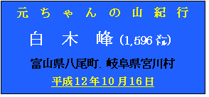 山頂一時間半滞在の間に、チョッピリ浮島まで走って見たが、好みのアングルを見つけ出せなかった。帰路、白木峰山荘裏の仁王山を見渡せる所へ行って見たものの、肉眼とレンズのギャップは大きかった。でも、秋の白木峰は、噂通りのステキな山だった。
