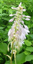 ガスは濃いが、山中は下界ほど雨が降らなかったようで、林道には水溜りも少なく、側溝の流れも大した事がなかった。昨年覚えた林道上の草花の名もまた忘れてしまったが、「ギボウシ」だけが大いに目立った。