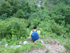 山頂を通り過ぎ、ニッコウキスゲより、ササユリを見たいという「山ノ神」の要望にこたえて、小白木寄りに祠から下った。