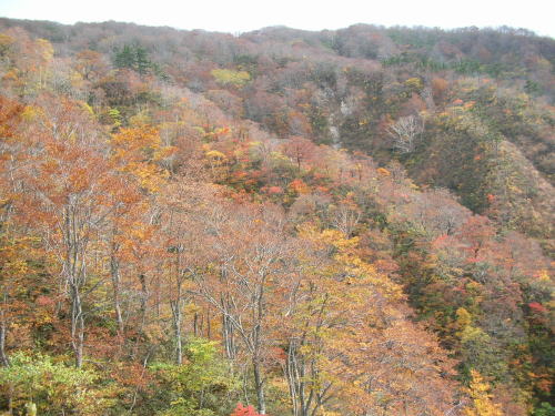 駐車場から眺めるに紅葉も、上限は、1400mくらい
