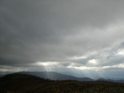 真っ黒な雲の一部に陽が差し、何とも言えない光景を、