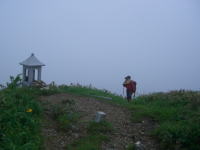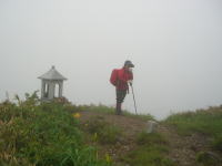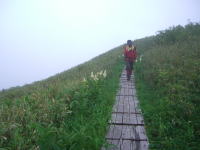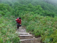 | 祠の先を降り小白木峰へ | 小白木峰山頂で | 階段の登り返し | 開花間近のニッコウキスゲ |
