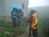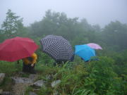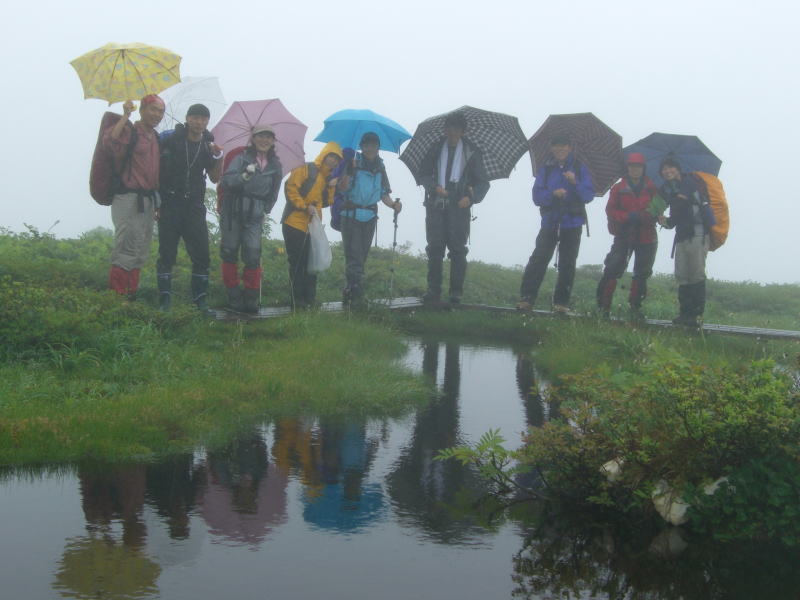 | 雨の中、参加者全員で・・、 白木峰・浮島で |