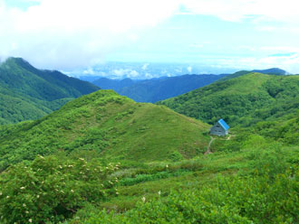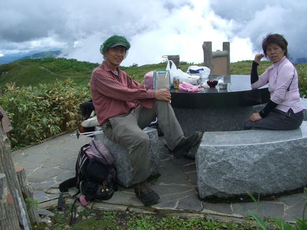 車中や登り始めを除けば雨に遭わなかっ。それどころか青空まで覗いた。「山頂を踏んだだけではちょっと寂しいのではない?」 と浮島ままで足を伸ばしたのであるが、それからまた戻って、小白木峰まではちょっと遠い気がするし、それではと前白木峰へと妥協のような感じで足を進めた。ススダケに気が向きはじめ、仕舞いには、山頂に着かない内に、リックがいっぱいになってしまった。そこでストップであった。