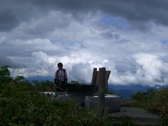 予報が悪かったのに、さすがこの時期に日曜日とあって、20~30台の車が押し寄せていた。「いつ頃見頃なんでしょうか?」 とか 「山頂はここですか?」 あるいは、浮島は何処にあるのですか?」 「自動車道が怖かった!」 などと問われた事を思えば、この白木峰に関しては、あまり知らない方々が多かったようであった。 そして、網を被っている我々を見ながら、「いいな~」 と、虫に悩まされている様子が伺えた。