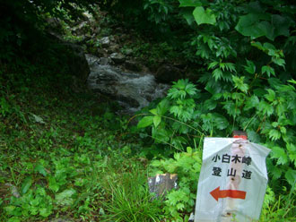 大長谷川の県境近くにある県営のダム?が小白木峰の登山口である。今日は、山ノ神が用意してくれたものは、おにぎり2個だけ。他に私が用意したものは、水500ml2本とラーメン1袋とコーヒーだけである。車中の2個分だったおにぎりを1個だけ食し、後は山中分として残し、山用品の買い物に充てるため、コンビニには寄らなかった。小白木峰登山口に着いた時は、流石にお腹が空いて、残りの1個のおにぎりをほおばった。
