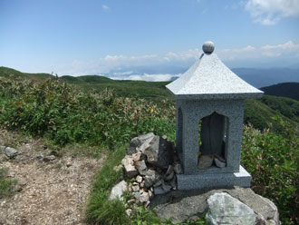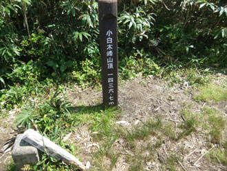 | 小白木峰への降りは祠が見印。 | 金剛堂山の手前の平らな所が小白木峰。 |