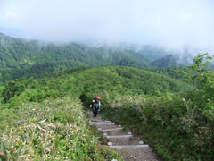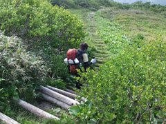 | ススダケを担げば重い筈。 | ここまで来れば、もう近い。 | ニッコウキスゲは、まだ蕾。 |