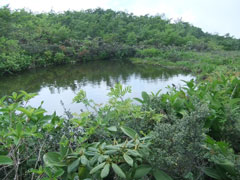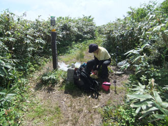 | ススダケ一時置き場? | 新しい登山道は地塘付近に修正されていた。 |