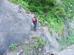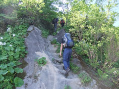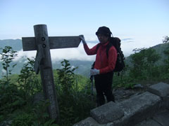 朝方の気温が低かったからか、いつも悩まされる「小さな虫」も差程気にならず、小さなススダケを見付けながら急登を凌いでいたら、二箇所目の林道に出る手前で、声が掛かった。「おお~っ、好山病富山組である。」 その頃から、やっぱり虫が気に掛かり、ネットか被った。ねぎちゃんが、「ネット仲間」 だと言った。座布団一枚。