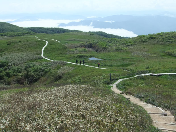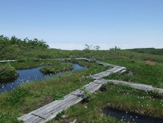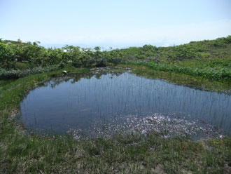 地塘周辺にも、ニッコウキスゲは見当たらない。 |