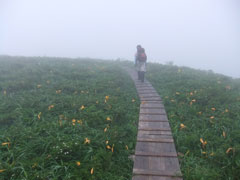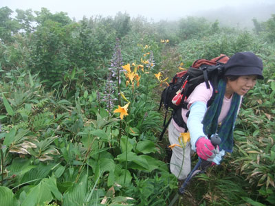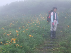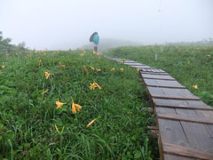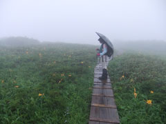 7/15 時間制限下の中、それでも、1300mの駐車場発が午前6時前。小白木峰寄りにササユリを訪ね、そして、浮島に行く途中から雨に見舞われた。それでも、ニッコウキスゲ・ササユリに出遭えて満足。盛りが過ぎたという見方もあるが、私にしてみれば、「今が盛り。」 と言っても過言でない気持ちである。