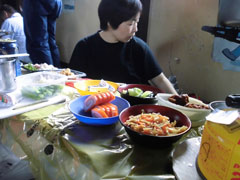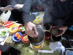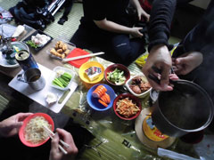 ~ 白木小屋でゆっくり食事をする。小屋は、かなり混んでいた。 ~