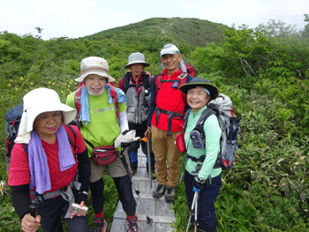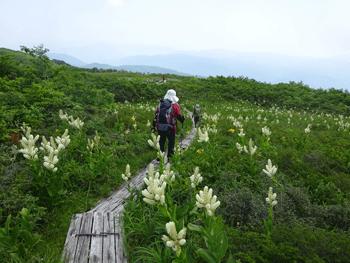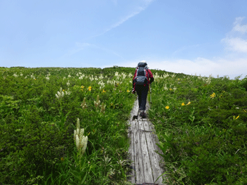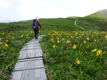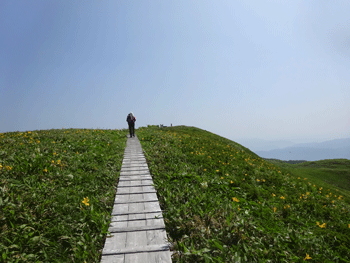 | 今年の開花は早いようです。 | 山頂に向かう木道。 |