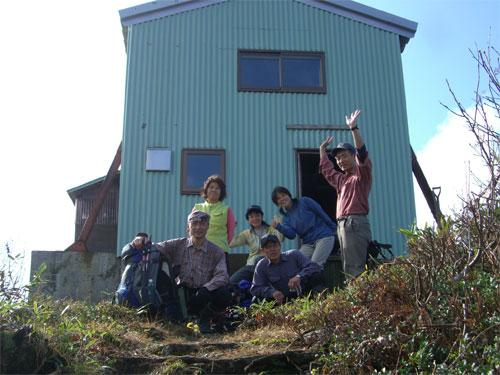 小屋に早く着けば、当然小屋滞在が長くなる。日頃喋らぬ事まで・・(ありゃ!) でも、楽しくて可笑しくてならなかった。下山時には、風が強くなったが、最後まで雨は降らなかった。気温も高く、本当に冬型になり、高所では雪になるのであろうかと思うくらいであった。しかし、皆は雪を待ち望んでいるのである。