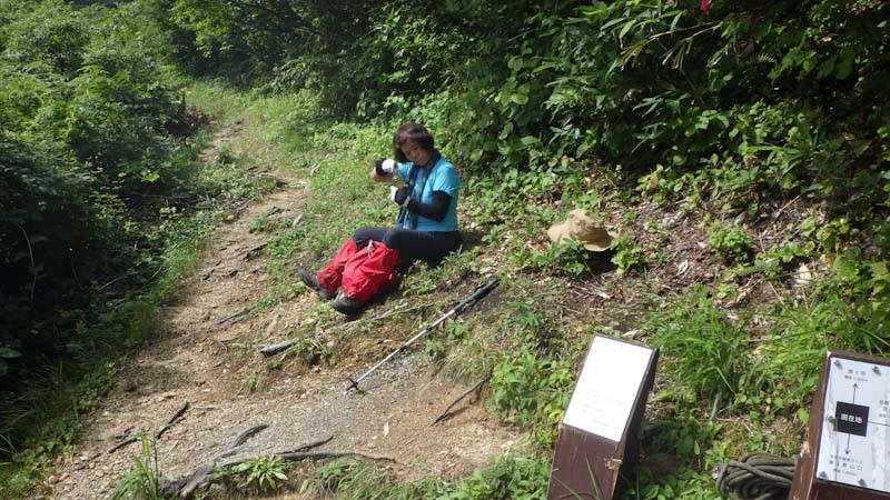 | ゆっくり歩きました。 | 宇奈月尾根との合流点での休憩。 |