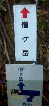 小さなケルンと文字の消えた標識のようなものが立っているが、前僧ヶ岳とわかりにくいかもしれない。