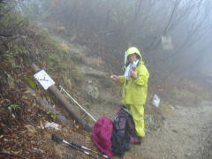 「シュンちゃん」は、登山口で私達の車を見て、少しは想像していたかもしれないが、この雨の日に誰も登って来ないであろうと思っていた私達は、それもそれが「シュンちゃん」であるから本当にビックリであった。