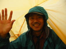 ツエルトの中に20〜30分もいたであろうか! 早々に引き上げる事にし、濡れたツエルトをたたんで仕舞い込み、担いで下山しようとしたその時、何と「黒部のシュンちゃん」が登って来たのである。