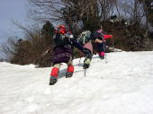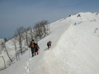 ■登山口には、いつになく雪が残っていたが、南斜面だけに、高度を上げれば、雪解けが進んでおり、イワウチワの群落が我々を歓迎してくれた。でも、今年は残雪が多く30〜40分もすると雪が現れた。■