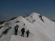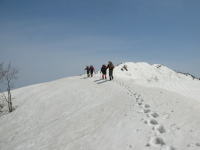 成谷山から僧ヶ岳頂上までは約1時間、小さなアップダウンをこなし、スリリングな痩せた尾根を過ぎれば僧ヶ岳の頂上に着く。