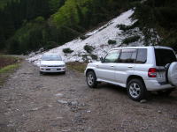 そのちょっと広まった所に、三重・松本・石川・富山ナンバーの車が6台所狭しと止まっていたが、私は、引き返して第4発電所近くの空いたスペースに止めるのもしゃくだったので、他車の移動に支障がないように、苦労しながら幅寄せして何とか止める事が出来た。