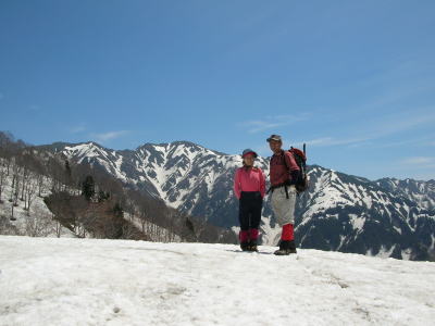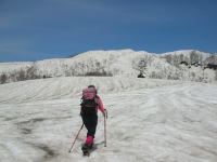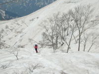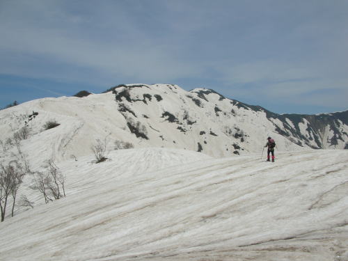 雪解けが進み、夏道が出ているその下当たりで、一人の登山者が降りて来られた。尋ねると随分早く出発されたようで、また初めての僧ヶ岳のようであった。
