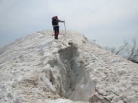 昨年に比べれば、3週間も遅く僧ヶ岳に来たわけだが、僧ヶ岳は、林道歩きが長くても、4月末がいい。通行止のゲートが恨めしくても、汚れていない雪の上がいい。