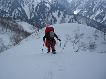 | 毛勝山の頭が見えません。 | 成谷山へは、もう少しです。 |