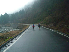 | 午前5時スタート予定でした。 | 登山口までの長い林道歩きです。 | 登山口まで2時間半を要しました。 |