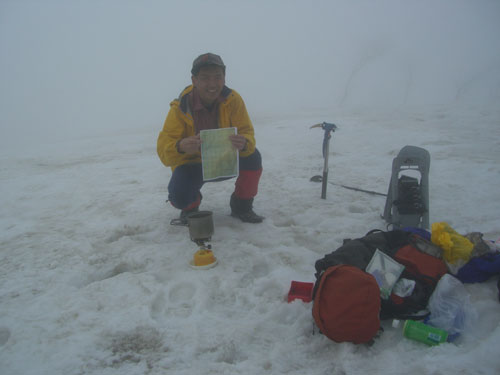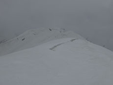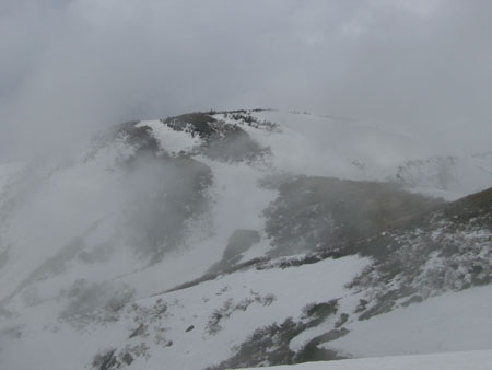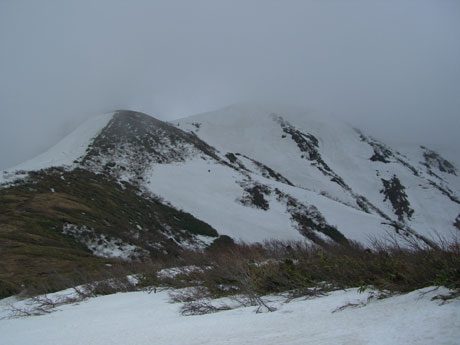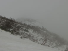 問題は、視界のない下りを、支尾根を避けて、上手く何の変哲のないピークに、辿り着けるかであった。