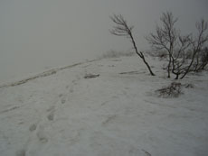 僧ヶ岳山頂到着が9時45分であったから、「山ノ神」に、「視界がないが、三ツ倉山を目指す。」 とメールを打った。一瞬パーッと、開けたから、前僧ヶ岳までは、難なく辿り着けた。