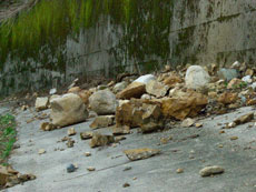 林道は落石がいっぱい。 |