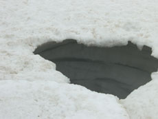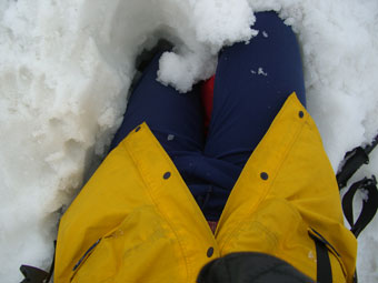 | 成谷堰堤手前の雪渓でストップ。 |