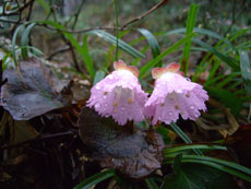 雨に濡れたイワウチワがお出迎え |