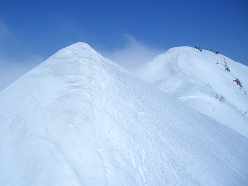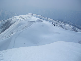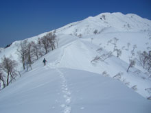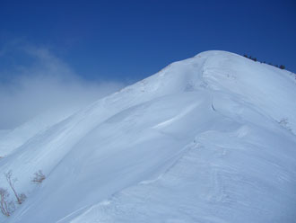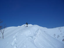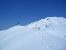 | トレースのないピークを越えて、気持ちよく山頂に・・・ |