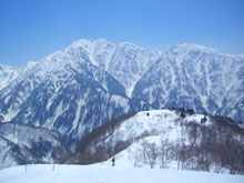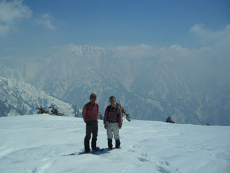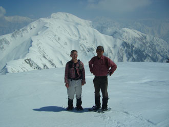 | S氏とカメラに収まるT(駒ヶ岳をバックに) | S氏とカメラに収まるU(毛勝山をバックに) |