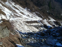 | 片貝第2発電所からの歩き | 片貝第5発電所から登山口のデブリ | 登山口の状態 |