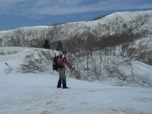 早く家に戻るには、「北ノ俣岳」 を蹴って「僧ヶ岳」 としたのが、山ノ神には気に入ってもらえず、今日の僧ヶ岳も単独行となったが、「曇り」の予報が、いつの間にか「晴れ」 になる幸運もあり、ルンルンの気分で雪上を歩いた。