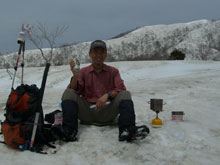 高岡4:35=登山口(6:00〜15)=1100m(7:05〜10)=1300m雪現る7:40=伊折山(7:55〜8:05)=成谷山(8:50〜9:00)=僧ヶ岳頂上(9:50〜10:10)=成谷山(10:45〜50)=伊折山付近で食事(11:00〜40)=登山口(12:40〜13:00)==高岡14:50