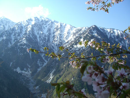 | 山桜と大明神山 |
