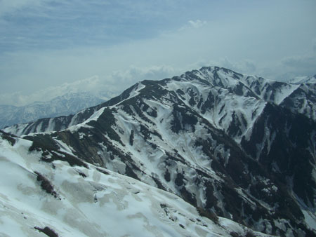 伊折山上部で毛勝山を眺めながら |