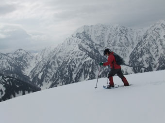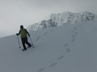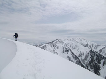 | 毛勝山・西北尾根を真ん中に・・・ | 右に、駒ヶ岳を眺めながら・・・ |