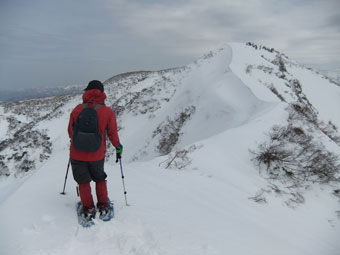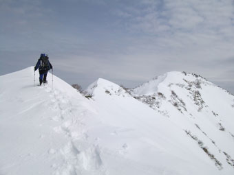 | これから行く僧ヶ岳山頂方面をバックに・・・ | 駒ヶ岳がだんだん大きくなってくる。 |