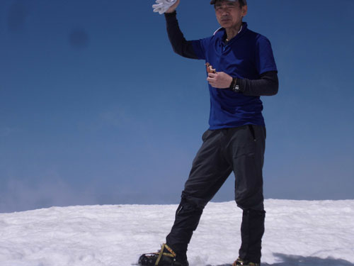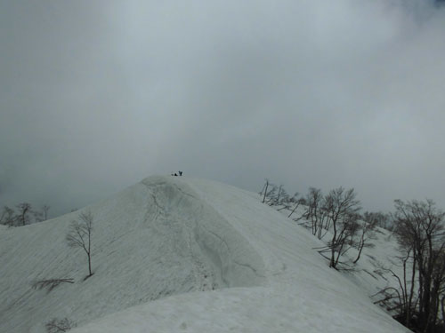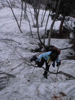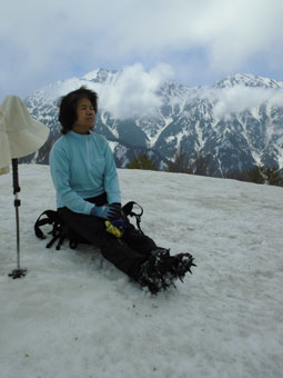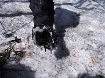 | 伊折山周辺を行く。 | アイゼンを外します。 |