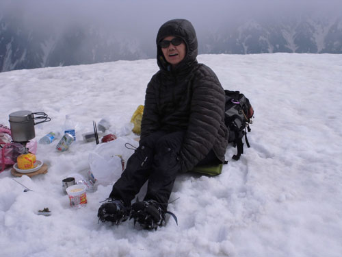 | 僧ヶ岳頂上で。ザックの上でのセルフタイマーでは・・・ |