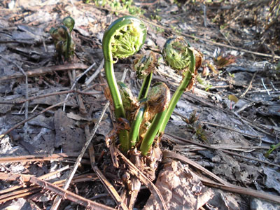 | 林道に降りてからコゴミを採りました。 |