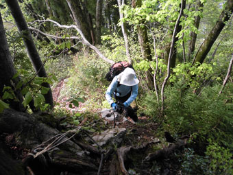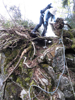 | 時にはロープを頼りに・・・ | 小枝を乗り越えて・・・ |