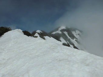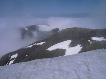 | 山頂から、仏ヶ平方面を見下ろす。 | 山頂から、駒ヶ岳方面を望む。 |