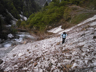 | いつもより、少し奥まで入りましたが・・・ | たくさん雪が残っていました。 |